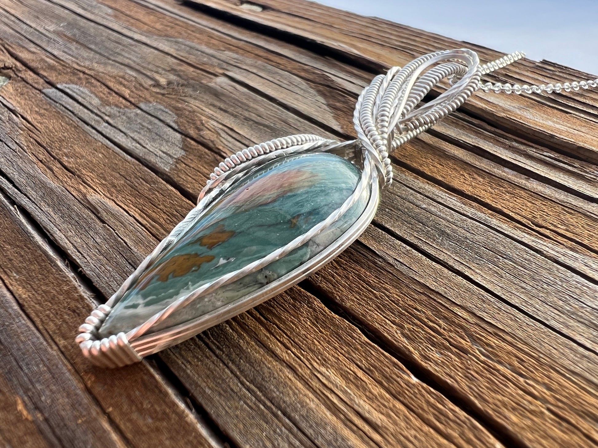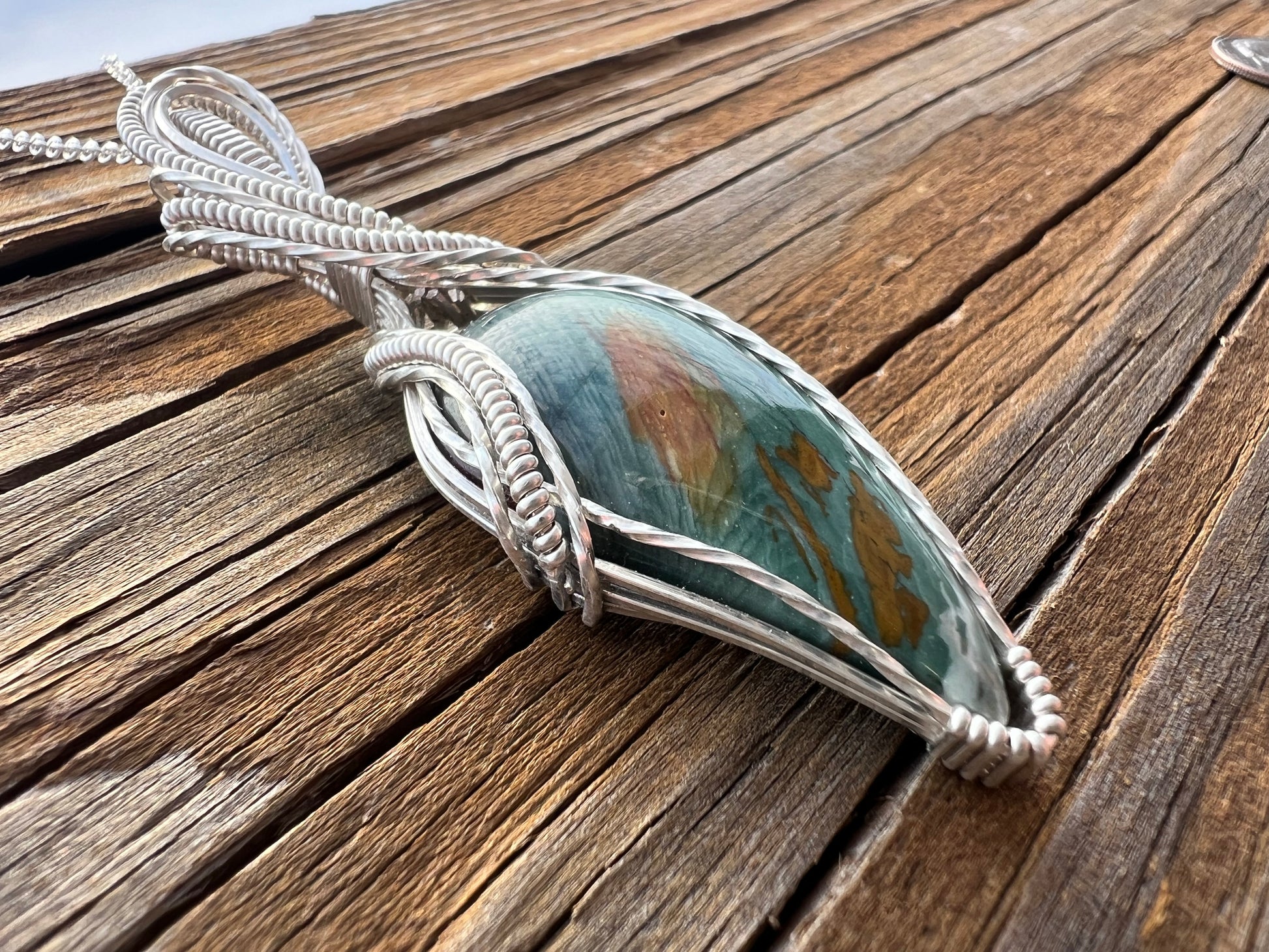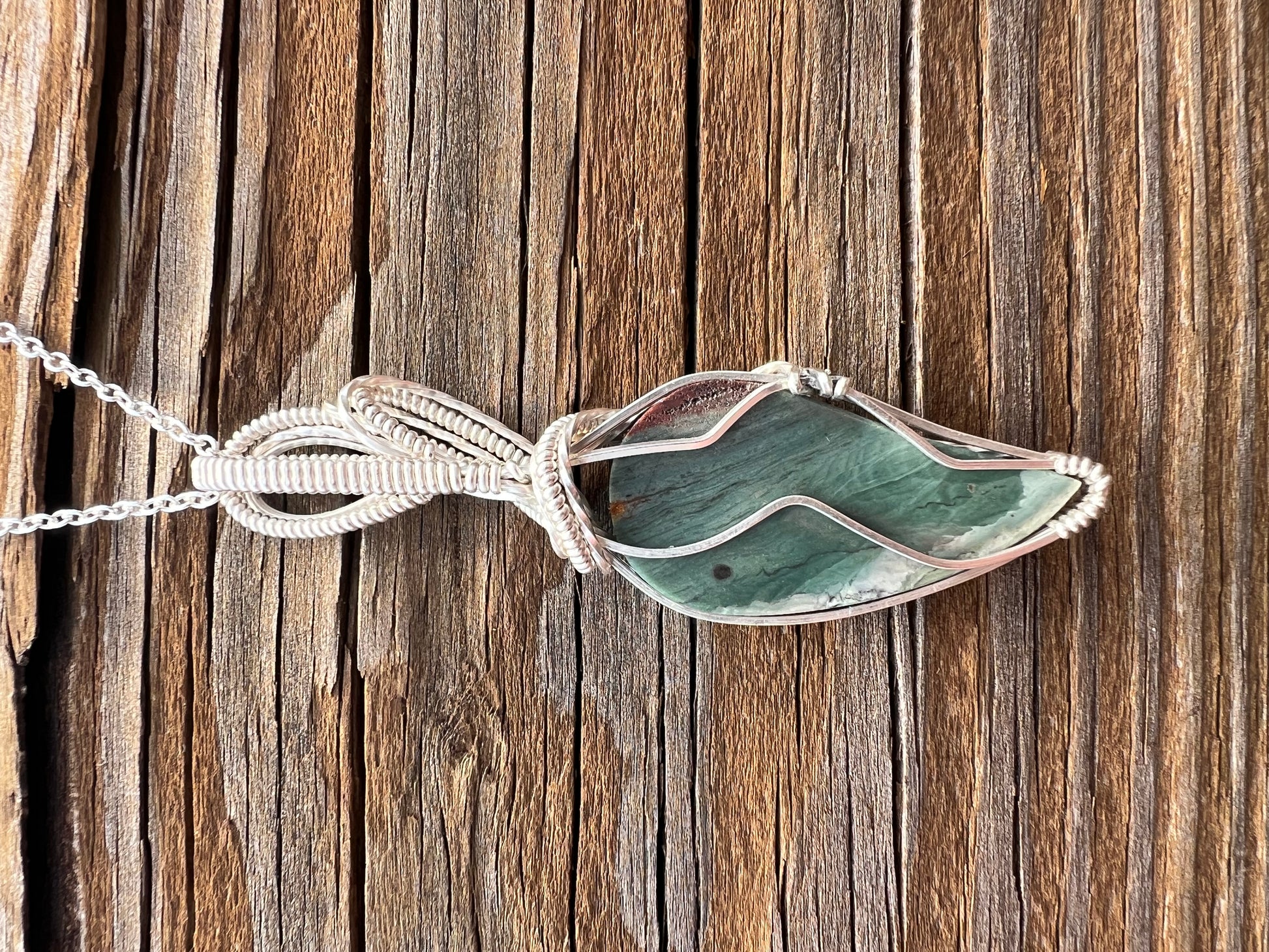 Gary Green Larsonite, is a beautiful stone found near McDermit Nevada. This stone has some of the most intense greens and intriguing patterns of any gemstone. While there is some debate on whether or not this stone is a form of petrified wood or vein jasper, there is no debating the beauty of Larsonite.
