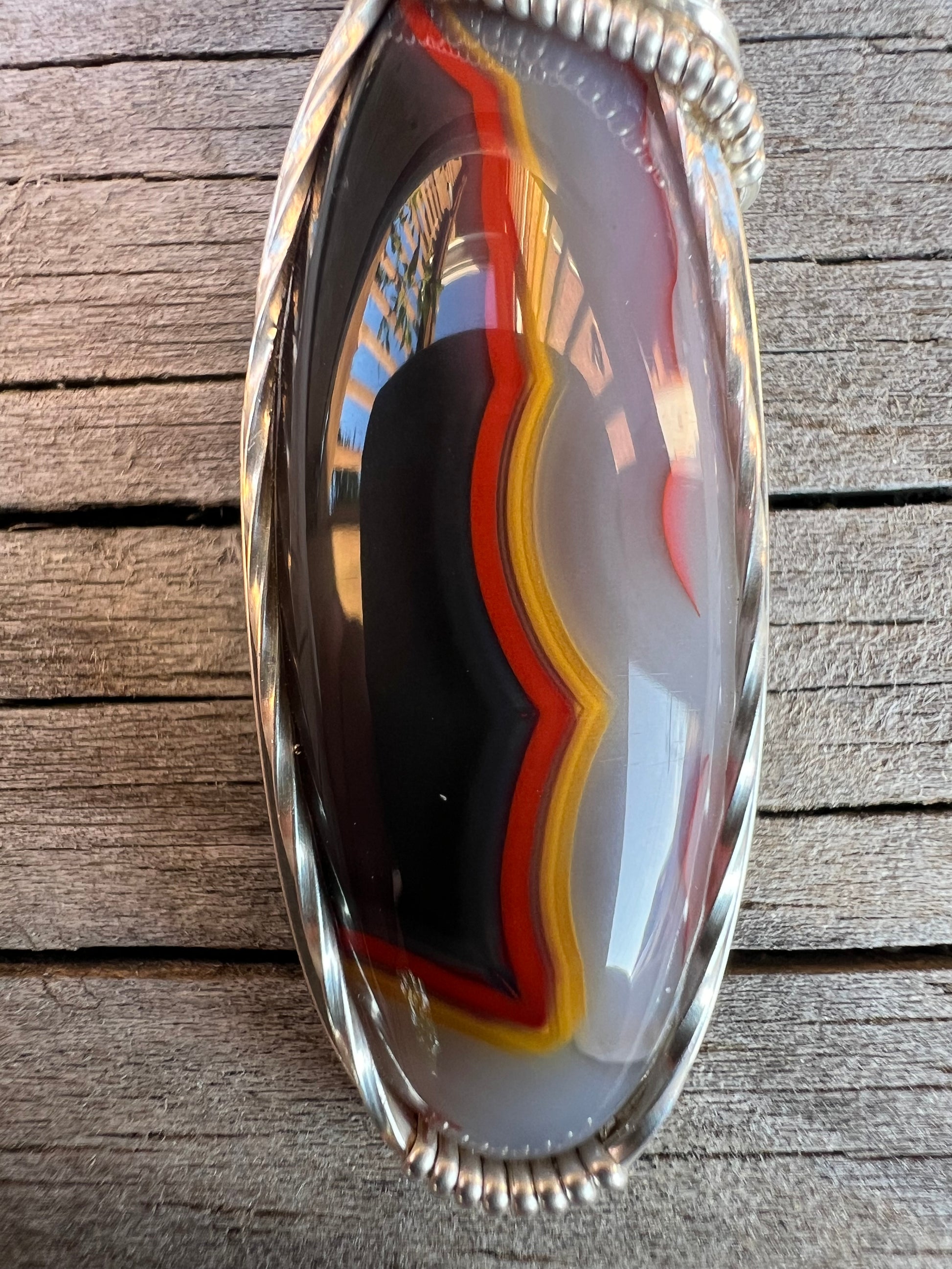 Imperial red Kentucky agate comes only from one small area of Kentucky. Estill county is known for having the most beautiful Kentucky agate, with intense red banding. However, even when agates are found in this area, only 1 out of 100 will contain the red coloration. The only way to know if the interior of an agate nodule is red is to cut it open. At an average of one hour per slice, this ends up being approximately 100 hours of saw time just to find one imperial red agate. This is truly a unique and rare North American treasure, and a must have for any rocky collector with ties to Kentucky.